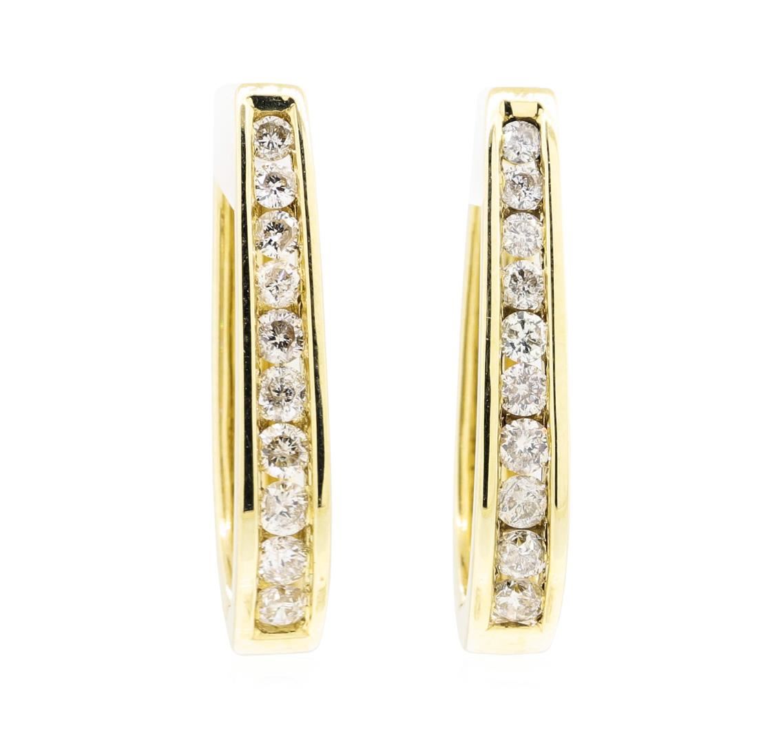 One pair of hoop earrings featuring: 14KT yellow gold weighing 7.7 grams containing diamonds weighing 1.00ctw.