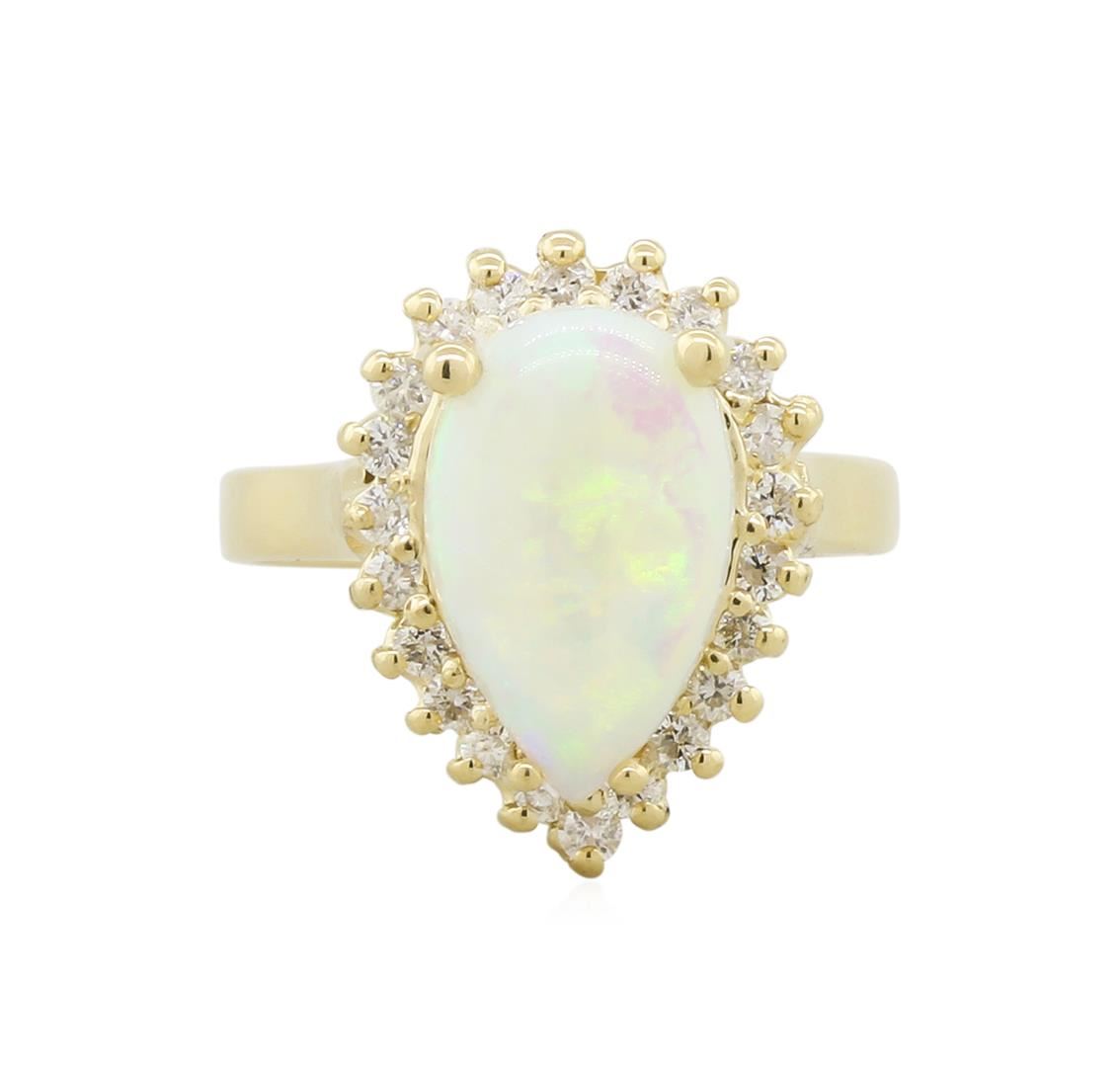 One ring featuring: 14KT yellow gold weighing 5.18 grams containing one opal with a total weight of 1.00ct and diamonds with a total weight of 0.40ct.