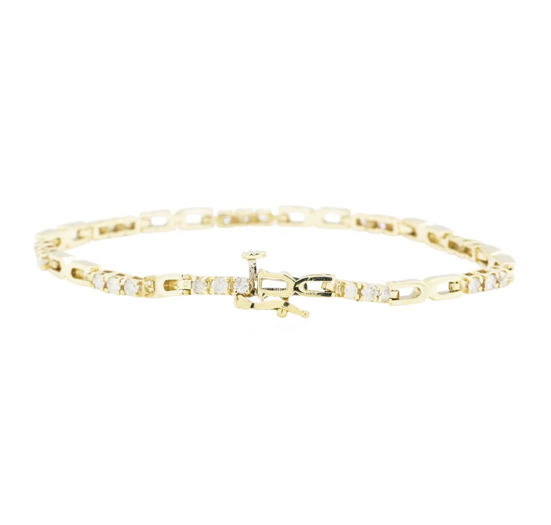 One bracelet with a plunger clasp with a figure eight safety featuring: 14KT yellow gold weighing 8.1 grams containing diamonds weighing 1.00ctw. The bracelet measures seven inches in length.