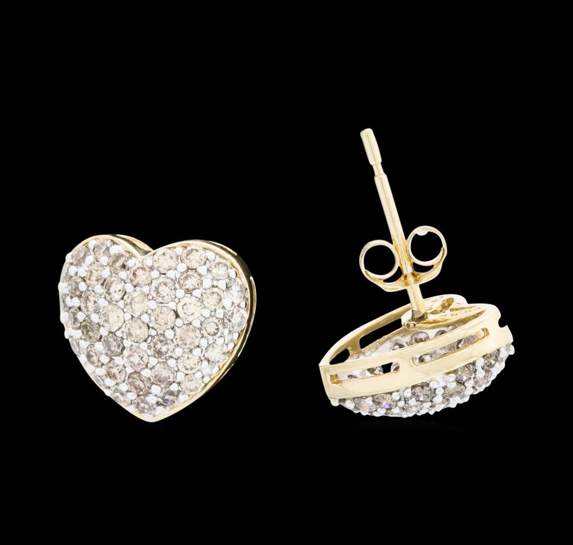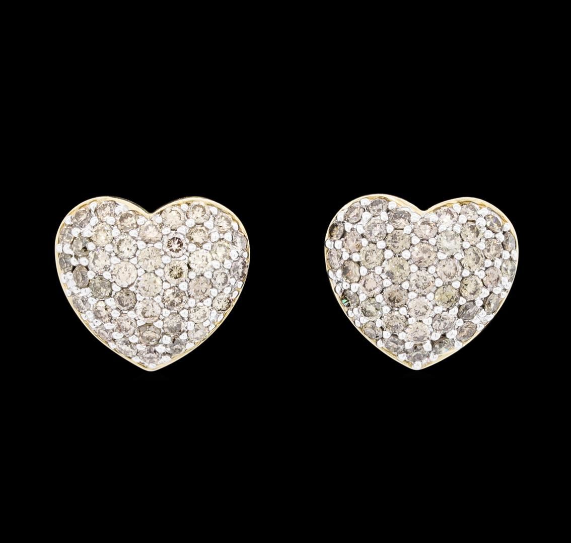 One pair of heart shaped earrings featuring: 14KT yellow gold weighing 2.5 grams containing diamonds weighing 1.00ctw.