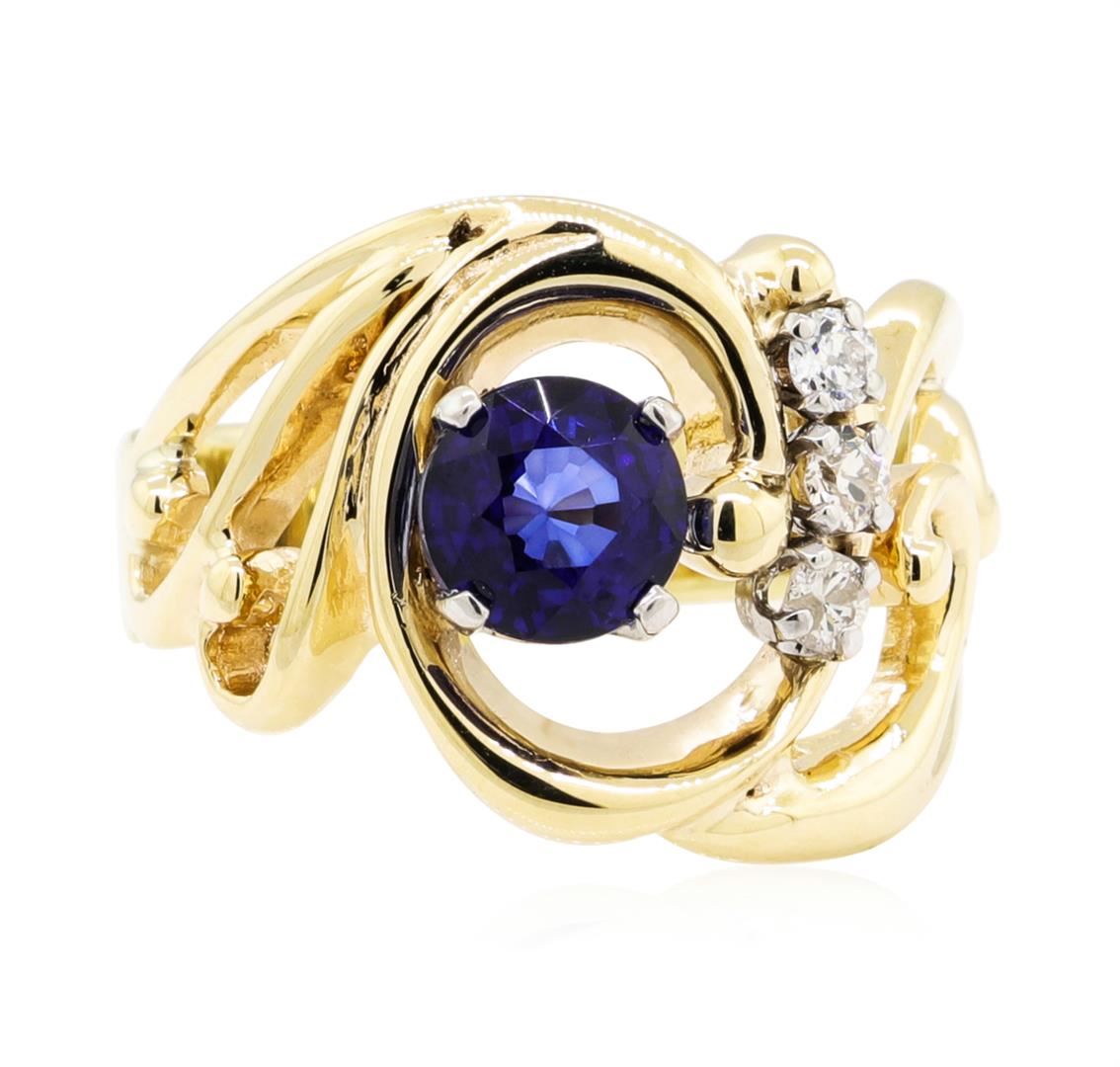 One ring featuring: 14KT yellow gold weighing 7.2 grams containing one sapphire weighing 1.29ct and diamonds weighing 0.15ctw. The ring is a size 6.5.