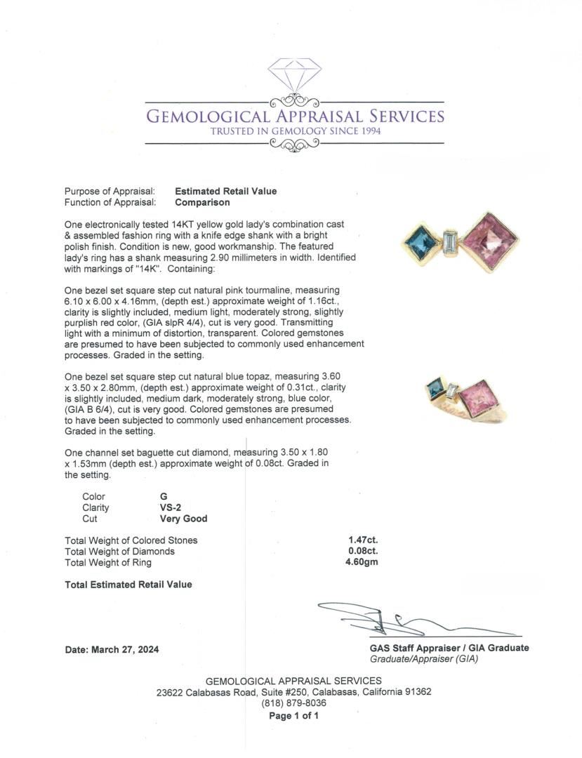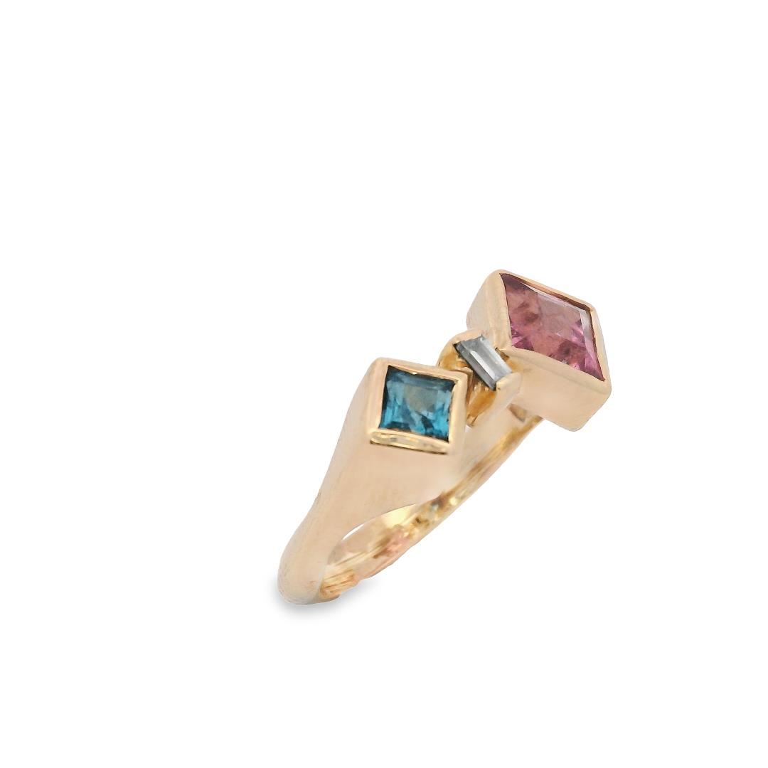 14KT Yellow Gold 1.47 ctw Tourmaline, Topaz, and Diamond Ring