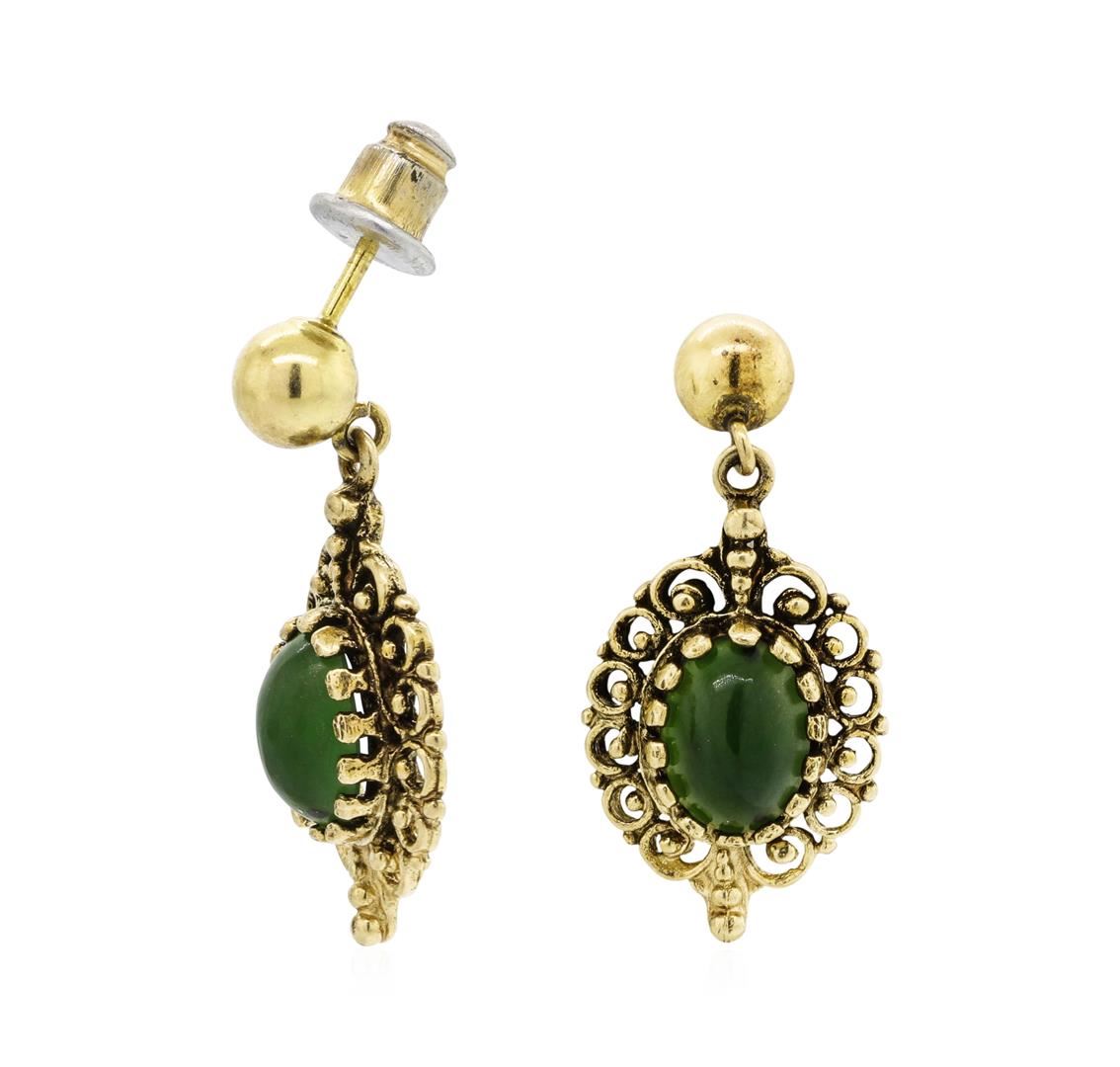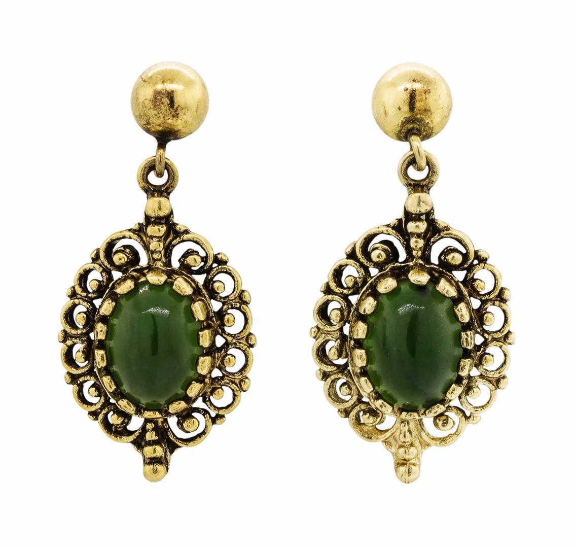 One pair of lady's earrings featuring: 14KT yellow gold weighing 4.4 grams containing two pieces of jade weighing 1.50ctw.