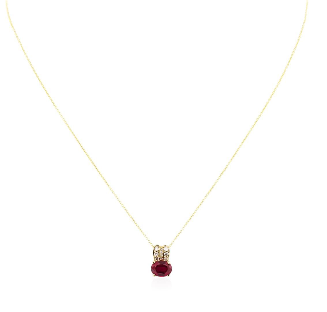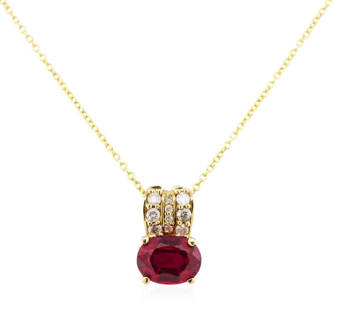 14KT Yellow Gold 1.89ct Ruby and Diamond Pendant With Chain