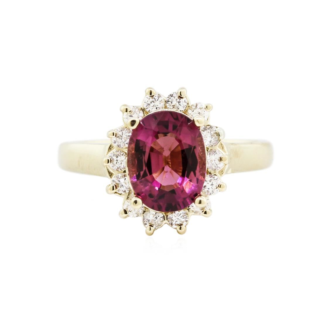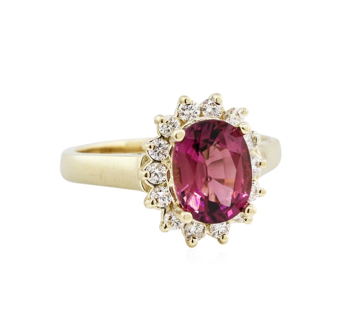 One ring featuring: 14KT yellow gold weighing 4.60 grams containing one pink tourmaline with a total weight of 1.95ct and diamonds with a total weight of 0.35ct.