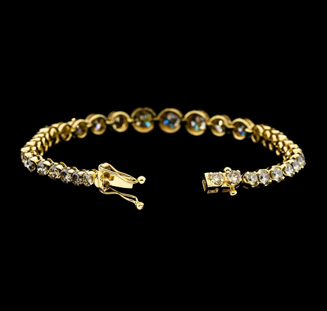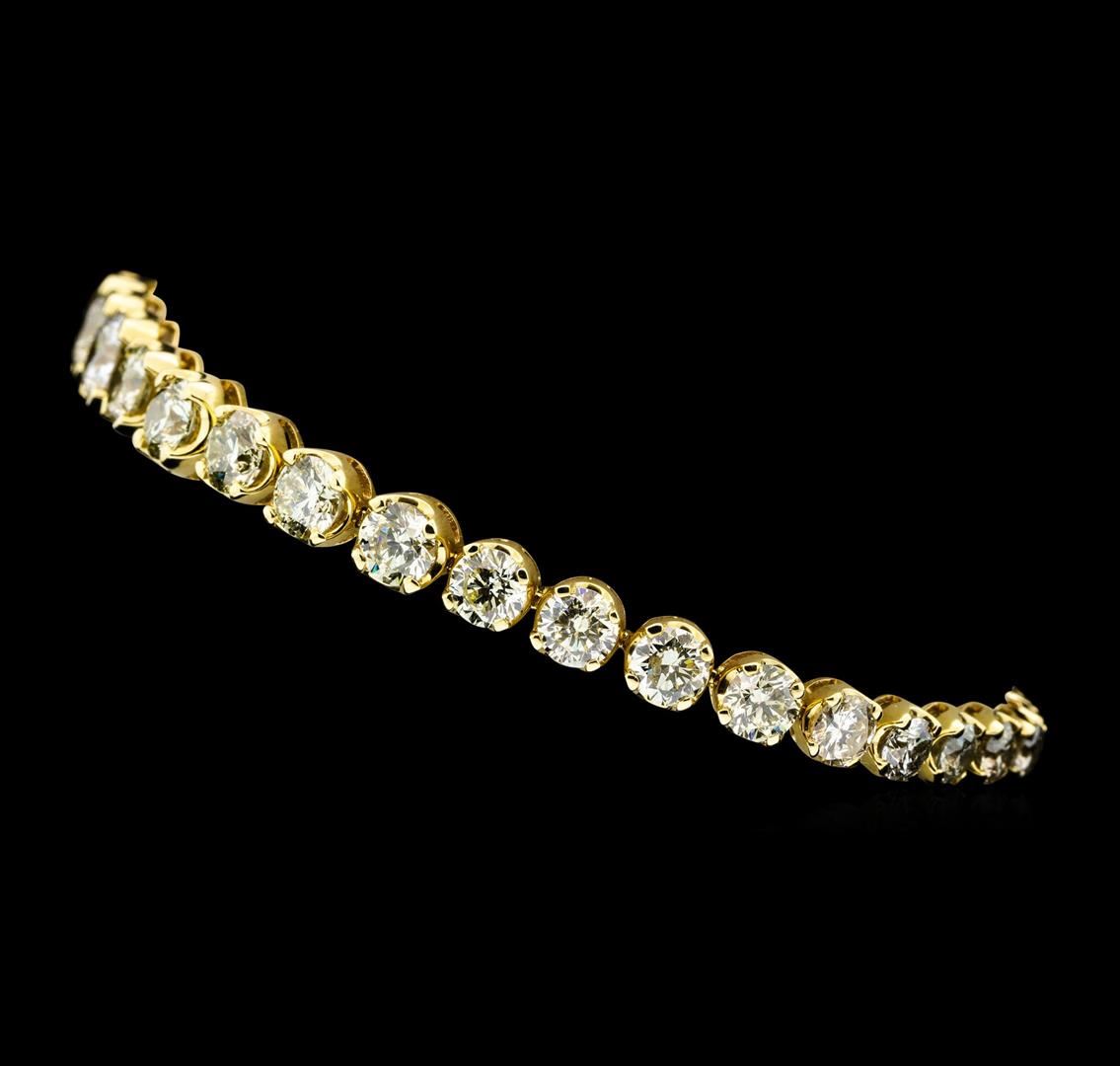One electronically tested 14KT yellow gold ladies cast & assembled diamond tennis bracelet with a bright polish finish. Seven and one-quarter inch length bracelet composed of a flexible graduating ribbon of diamonds, terminating in a concealed clasp with AIG Appraised at $49,070.00.