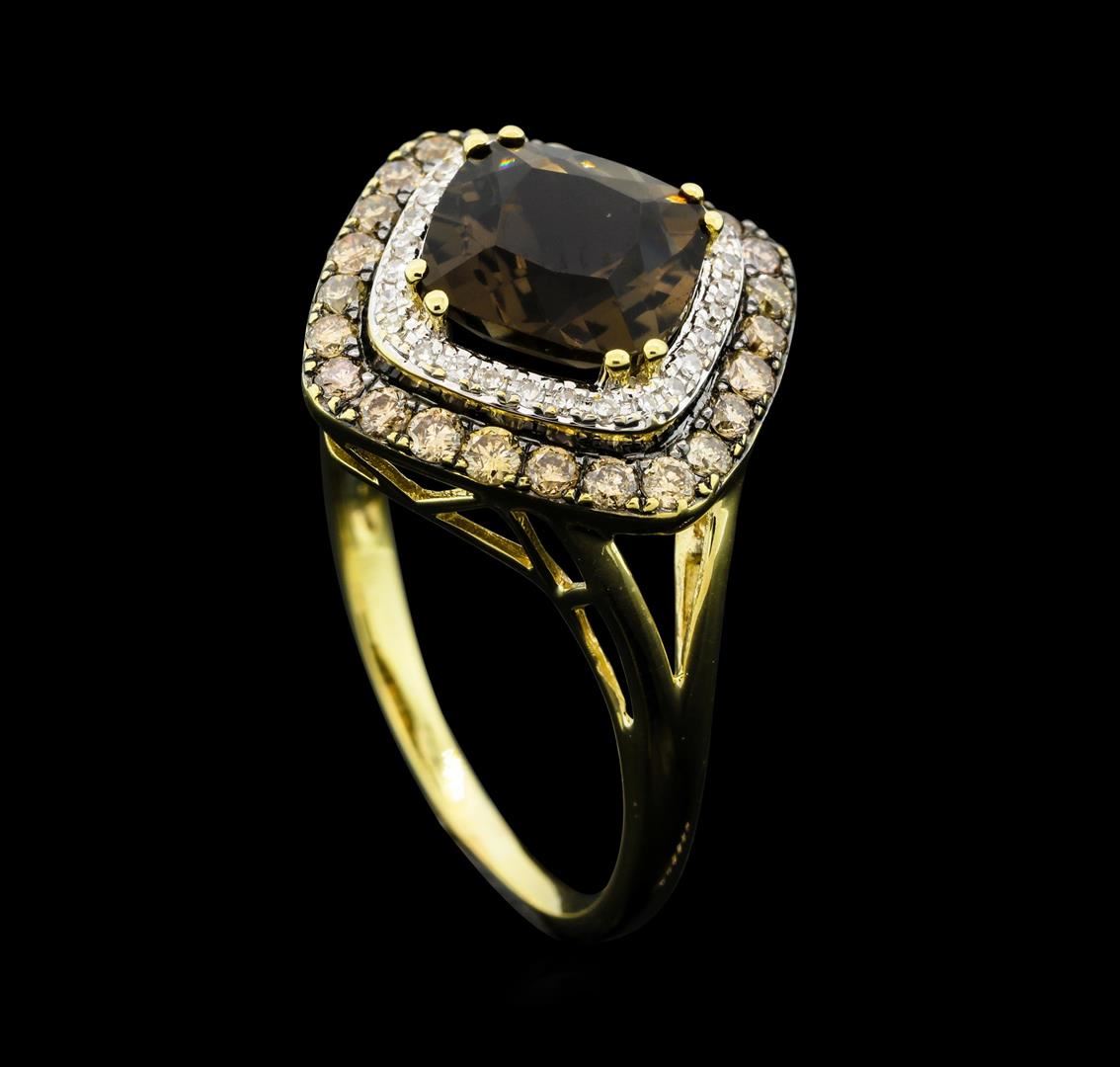 14KT Yellow Gold 2.00 ctw Smokey Quartz and Diamond Ring