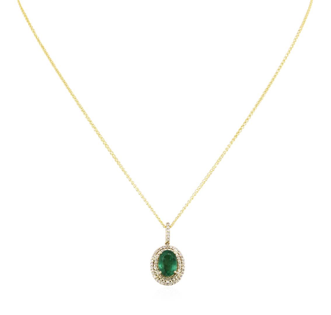 One pendant featuring: 14KT yellow gold weighing 2.75 grams containing one emerald with a total weight of 2.40ct and diamonds with a total weight of 0.35ct.