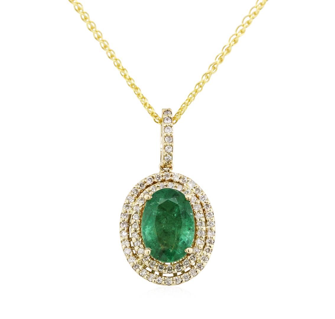 14KT Yellow Gold 2.40ct Emerald Diamond Pendant With Chain