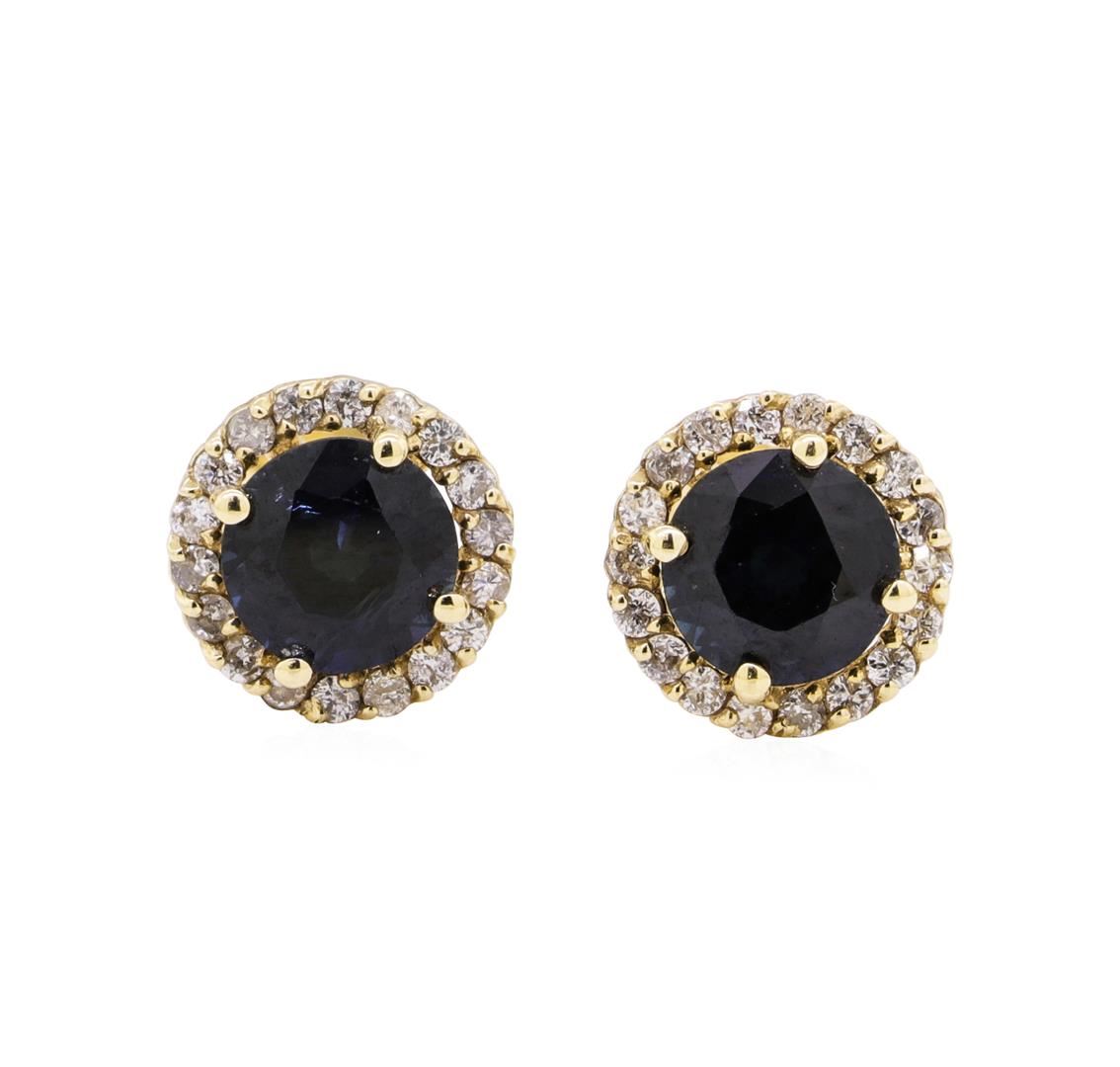14KT Yellow Gold 2.45 ctw Sapphire and Diamond Halo Stud Earrings