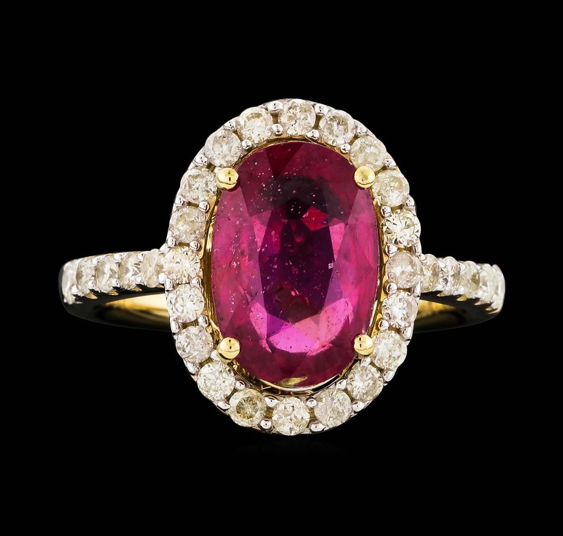 14KT Yellow Gold 4.19ct Ruby and Diamond Ring