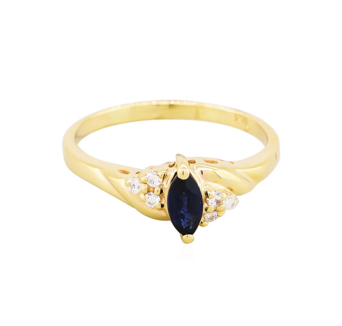 14KT Yellow Gold .50ct Marquise Sapphire and Diamond Ring