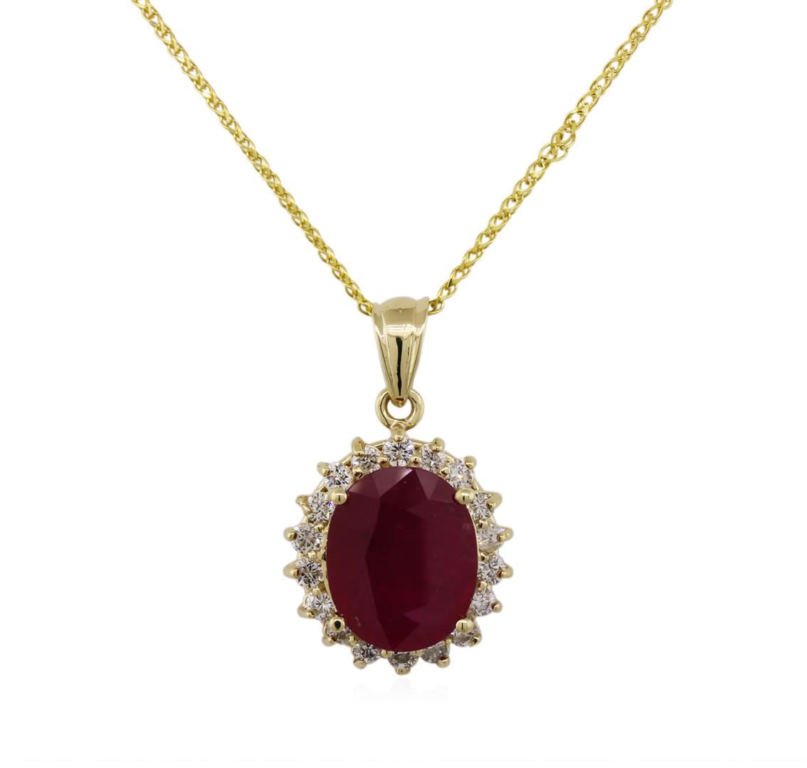 One pendant featuring: 14KT yellow gold weighing 4.20 grams containing one ruby with a total weight of 7.61ct and diamonds with a total weight of 0.85ct.