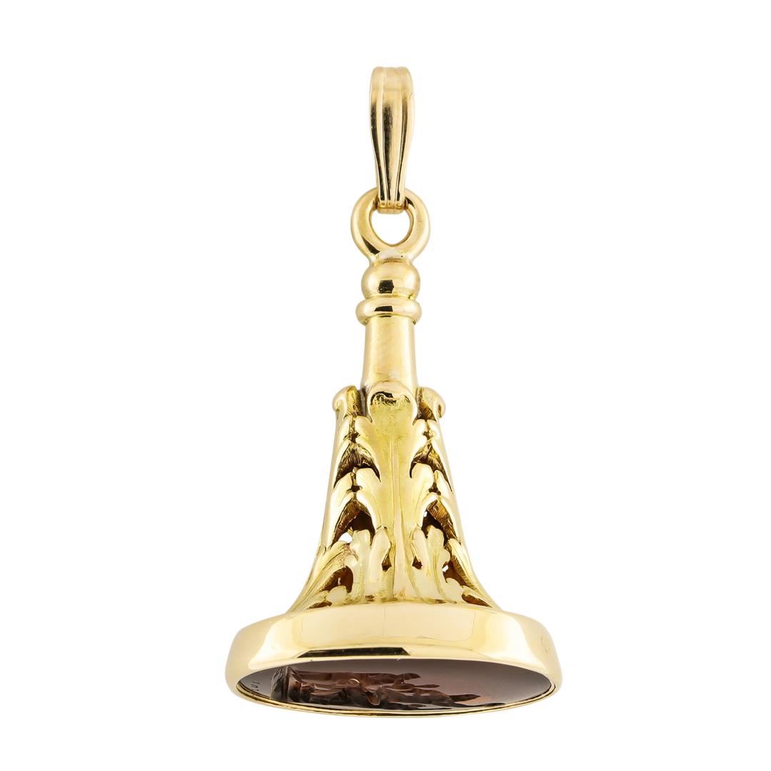 One 14KT Yellow Gold Amber Pendant with a total weight of 9.6 grams.