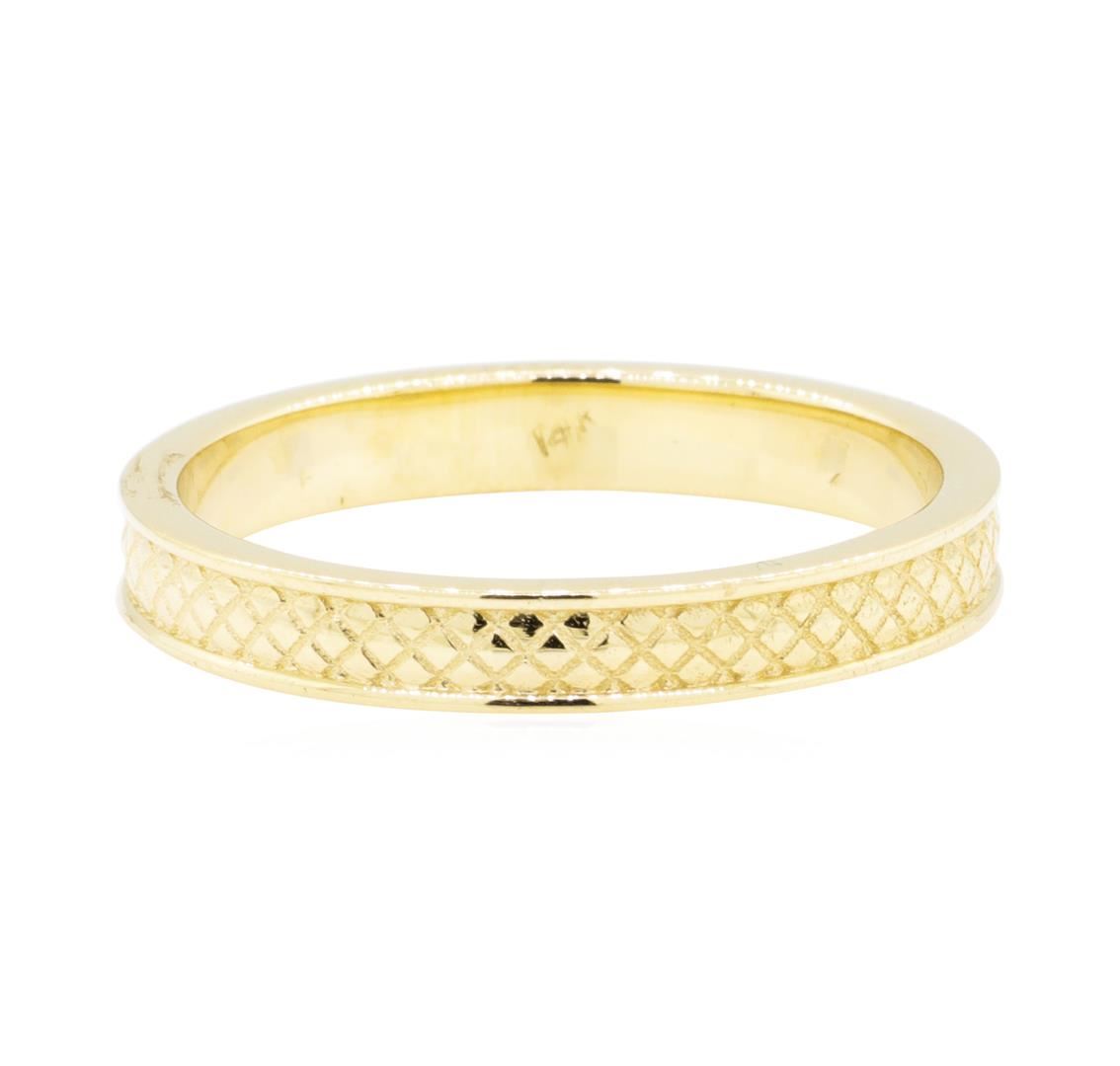 One band featuring: 14KT yellow gold weighing 3.5 grams. The ring is a size 8.5.