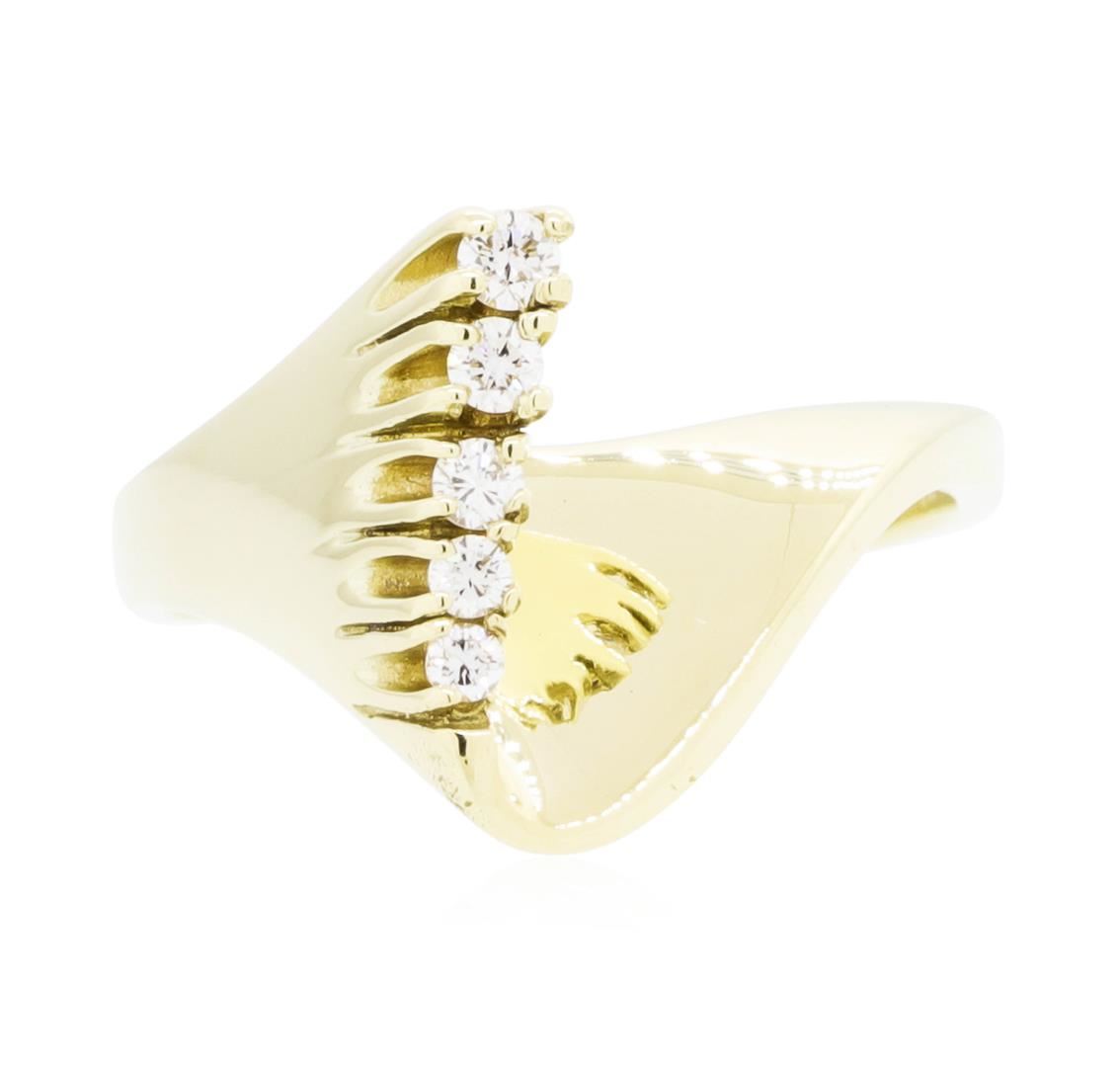 One lady's ring featuring: 14KT yellow gold weighing 5.1 grams containing diamonds weighing 0.10ctw. The ring is a size 6.