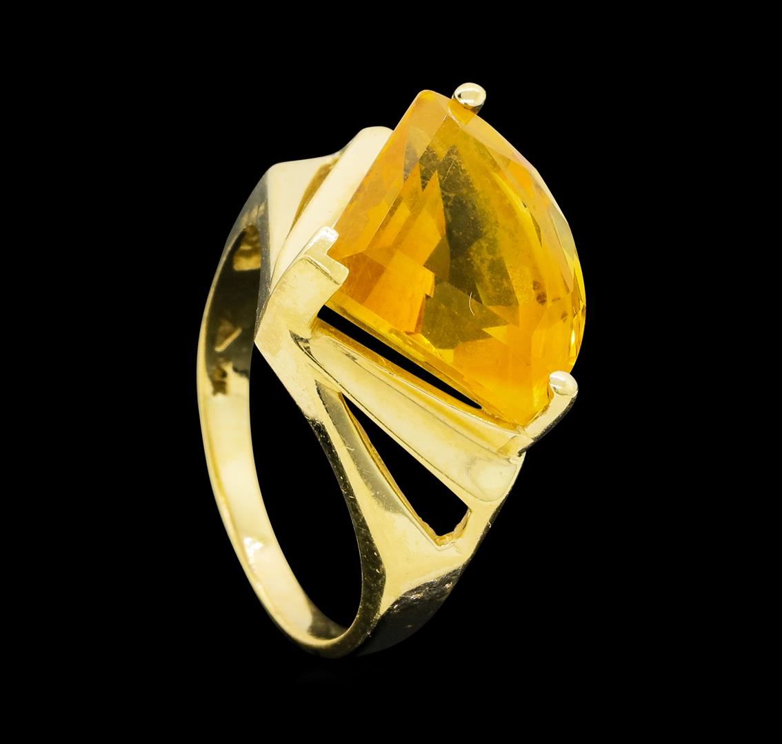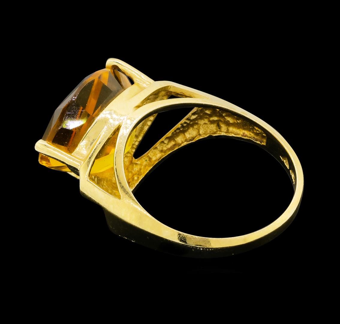 One lady's ring featuring: 14KT yellow gold weighing 4.5 grams containing one citrine quartz weighing 4.00ct. The ring is a size 7.