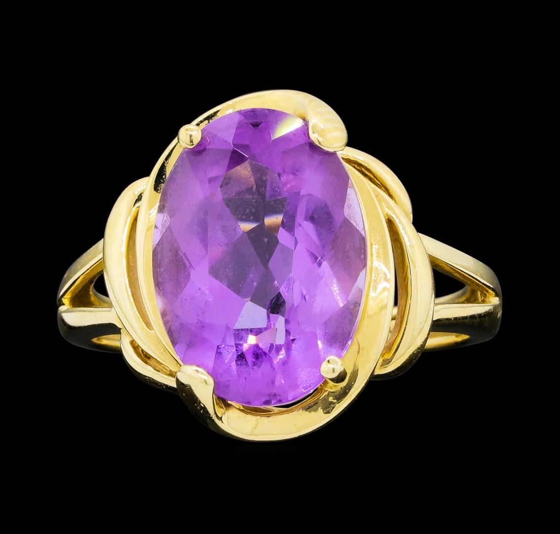 One lady's ring featuring: 14KT yellow gold weighing 5.1 grams containing one amethyst weighing 7.00ct. The ring is a size 8.