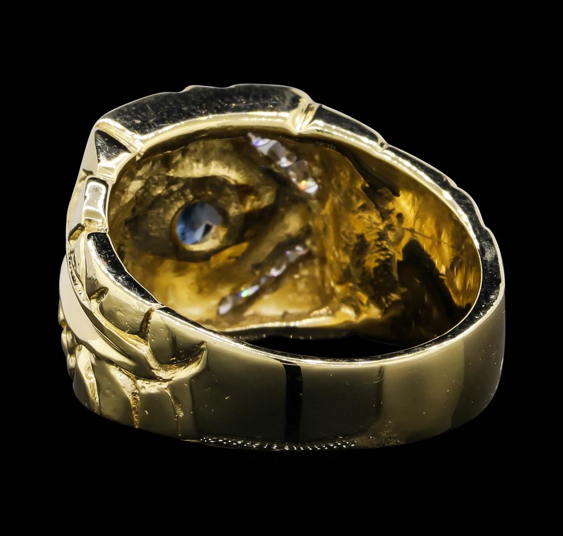 One men's ring featuring: 14KT yellow gold weighing 11.2 grams containing one center sapphire weighing 0.70ct and diamonds weighing 0.40ctw.
