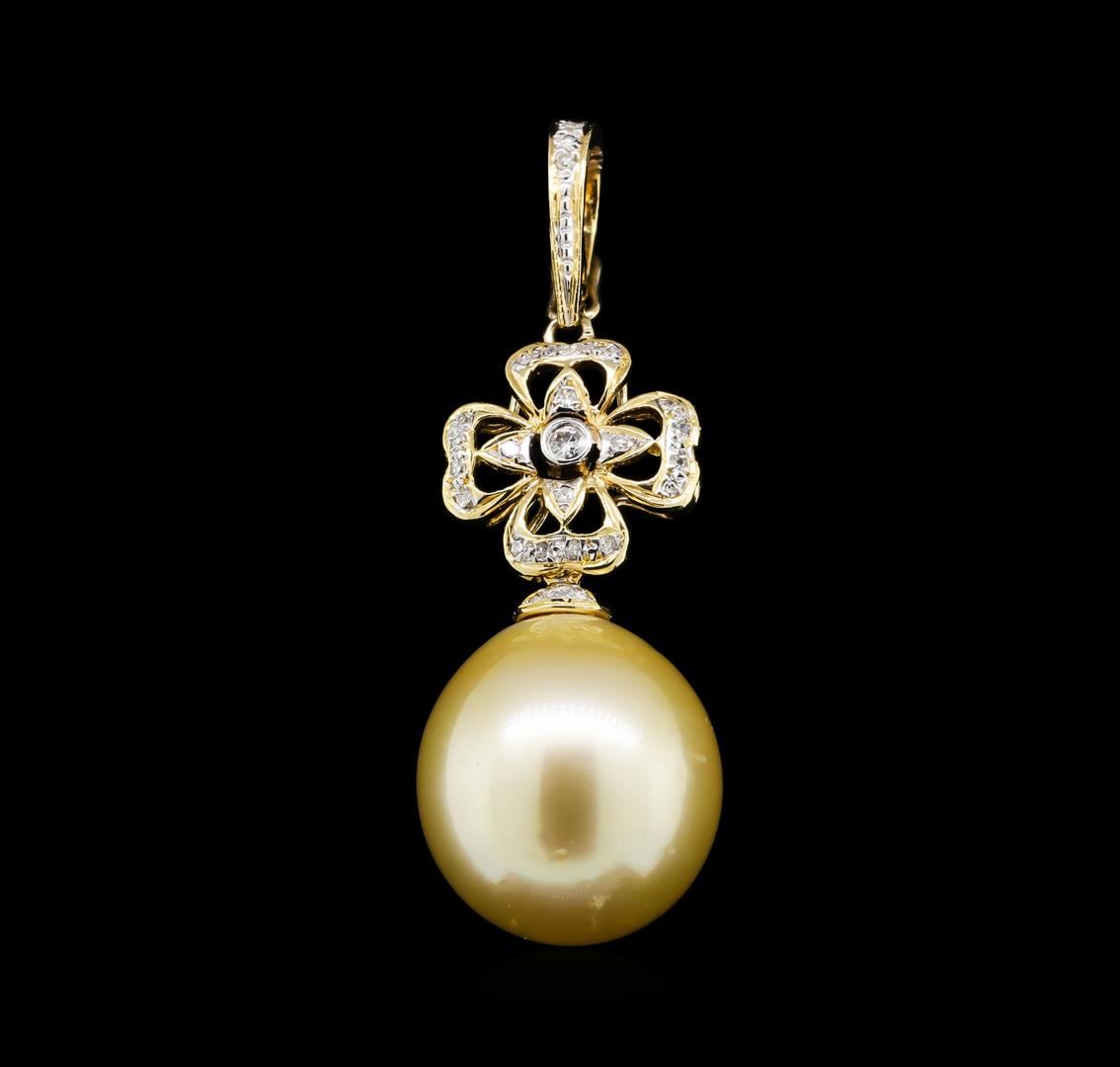One Ladies pendant featuring: 14KT yellow gold weighing 5.8 grams containing one pearl measuring 14.80mm x 13.80mm and diamonds weighing 0.10ctw.