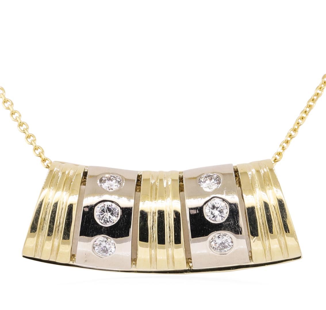 14KT Yellow and White Gold 0.30 ctw Diamond Tubular Slide Pendant with Chain