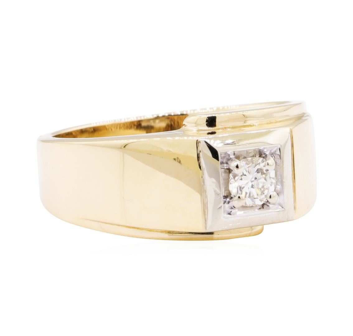 One by pass motif mens ring featuring: 14KT yellow and white gold weighing 9 grams containing diamonds weighing 0.30ctw. The ring is a size 10.
