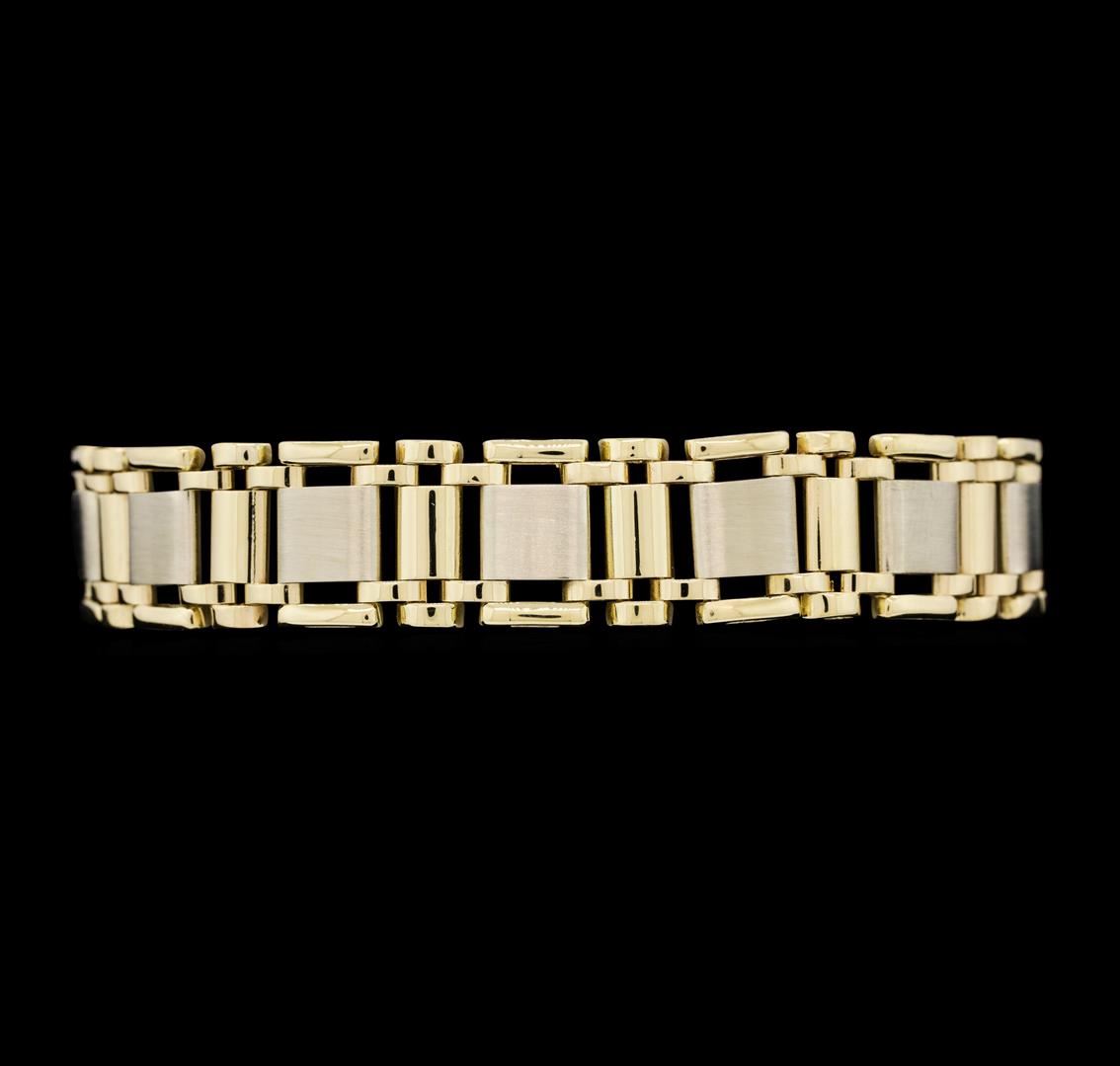 One men's bar-roll bracelet measuring eight inches in length featuring: 14KT yellow and white gold weighing 36.3 grams.