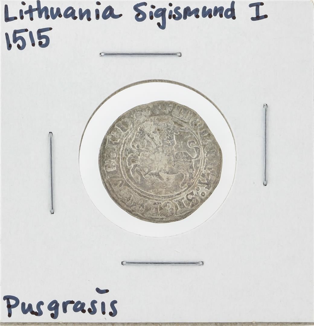 One 1515 Lithuania Sigismund I Pusgrasis Silver Coin.
