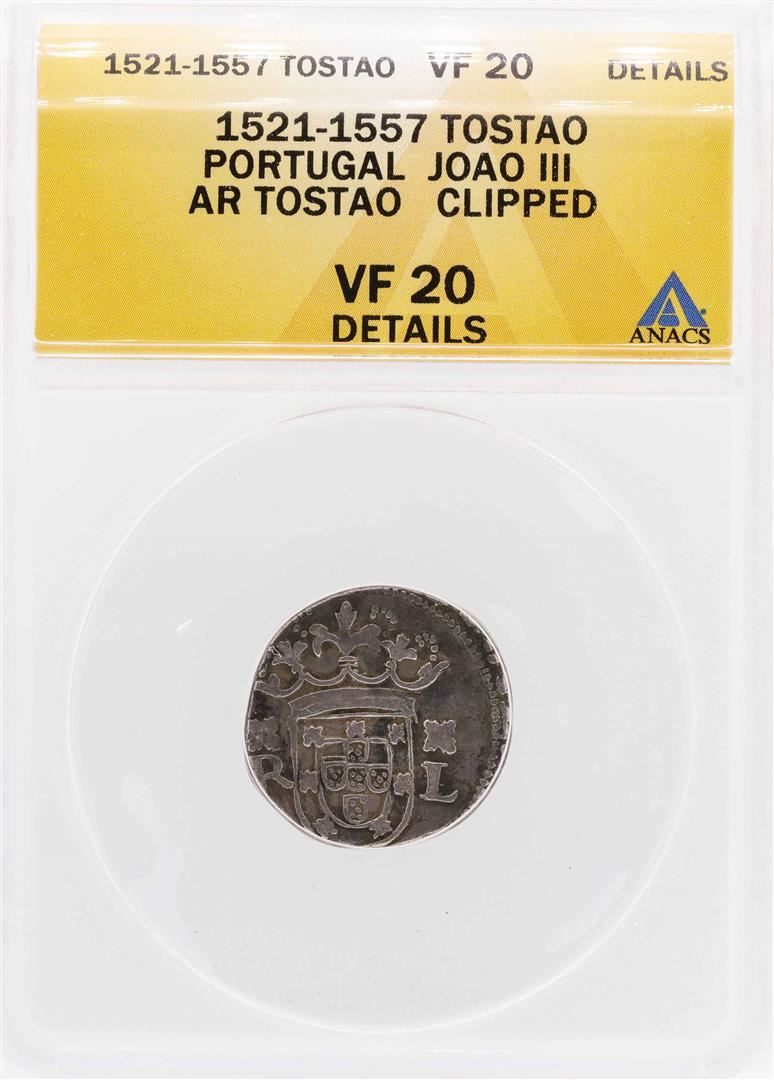 1521-1557 Portugal Joao III AR Tostao Coin ANACS VF20 Details