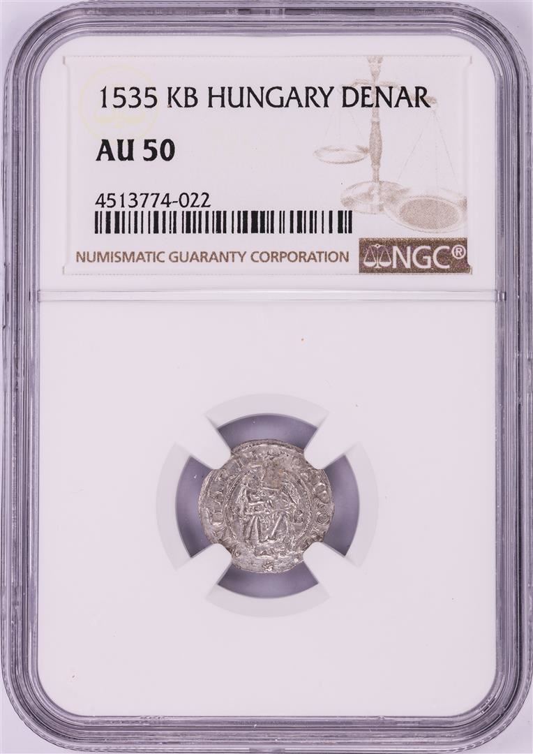 One 1535 KB Hungary Denar 'Madonna and Child' Coin NGC AU50. NGC Certified.