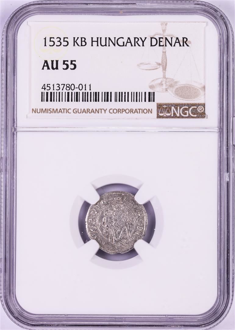 One 1535 KB Hungary Denar 'Madonna and Child' Coin NGC AU55. NGC Certified.