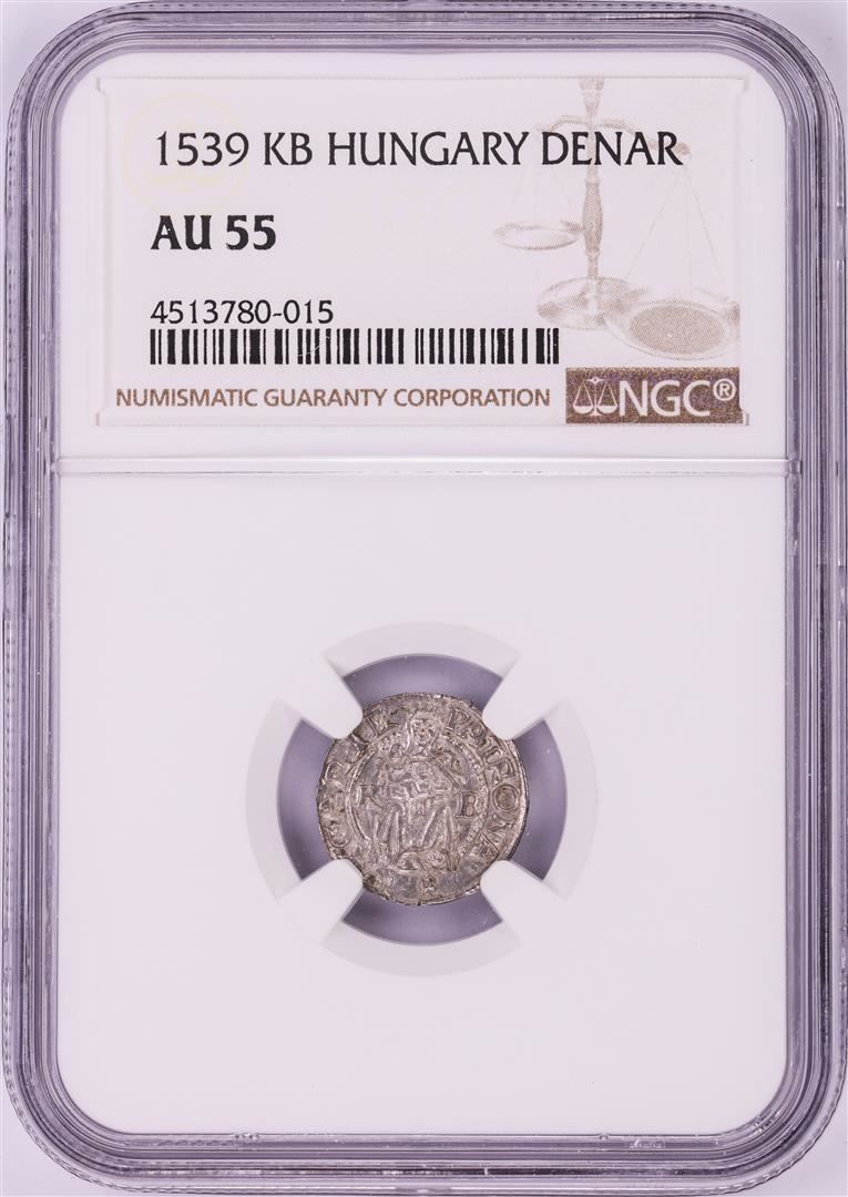 One 1539 KB Hungary Denar 'Madonna and Child' Coin NGC AU55. NGC Certified.