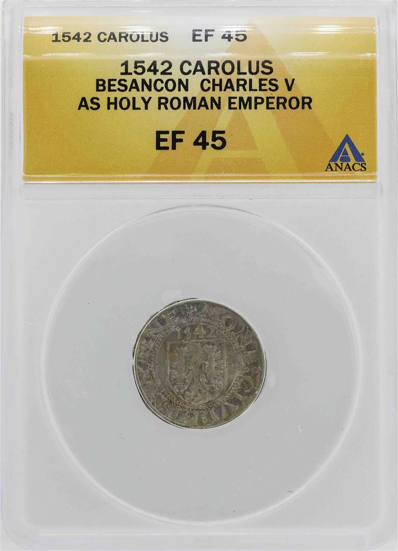 One 1542 Besancon Charles V Holy Roman Emperor Coin ANACS XF45. ANACS Certified.