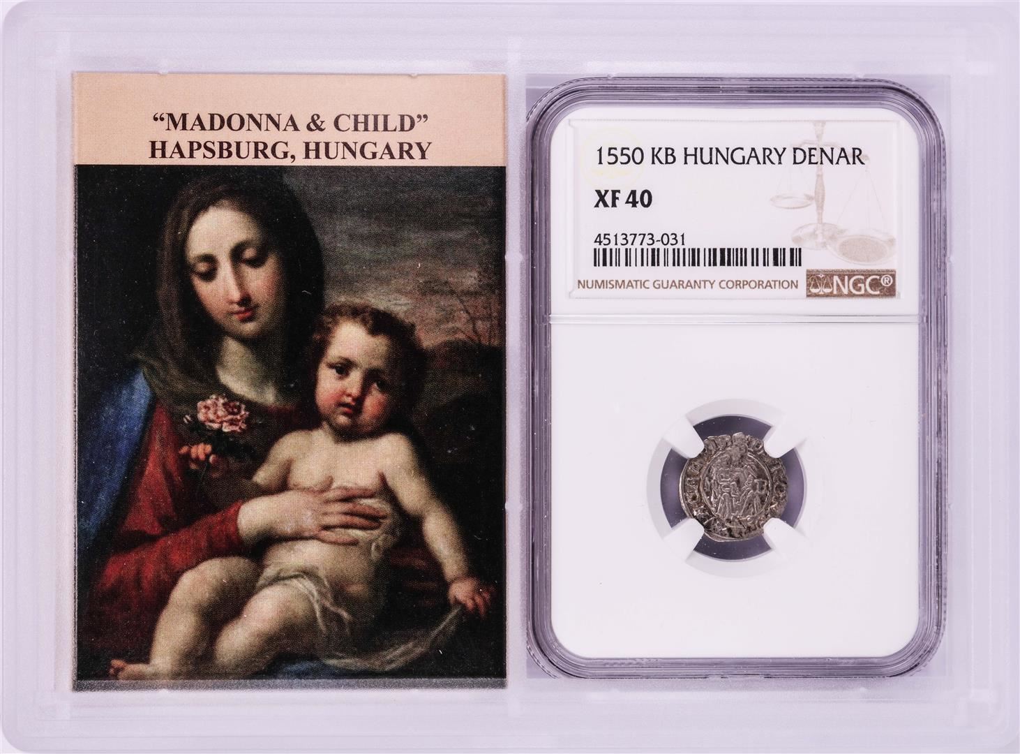 One 1548 KB Hungary Denar 'Madonna and Child' Coin NGC XF40 w/ Story Box. NGC Certified.