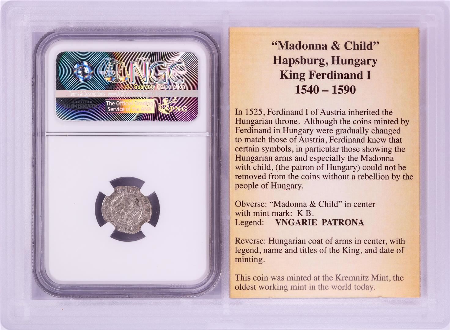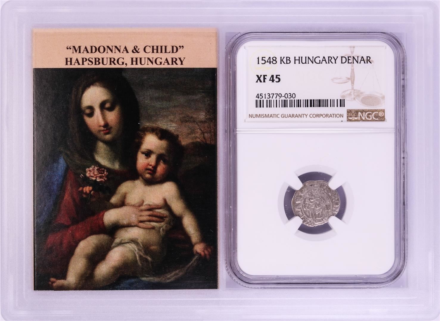 1548 KB Hungary Denar 'Madonna and Child' Coin NGC XF45 w/ Story Box