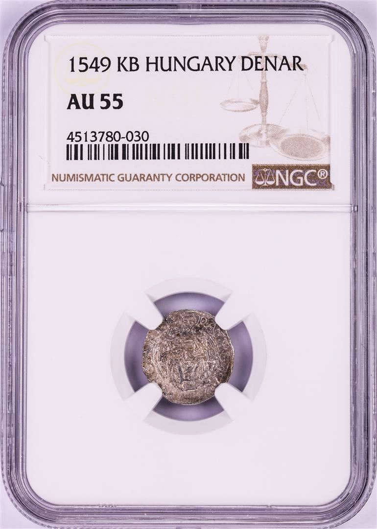 One 1549 KB Hungary Denar 'Madonna and Child' Coin NGC AU55. NGC Certified.
