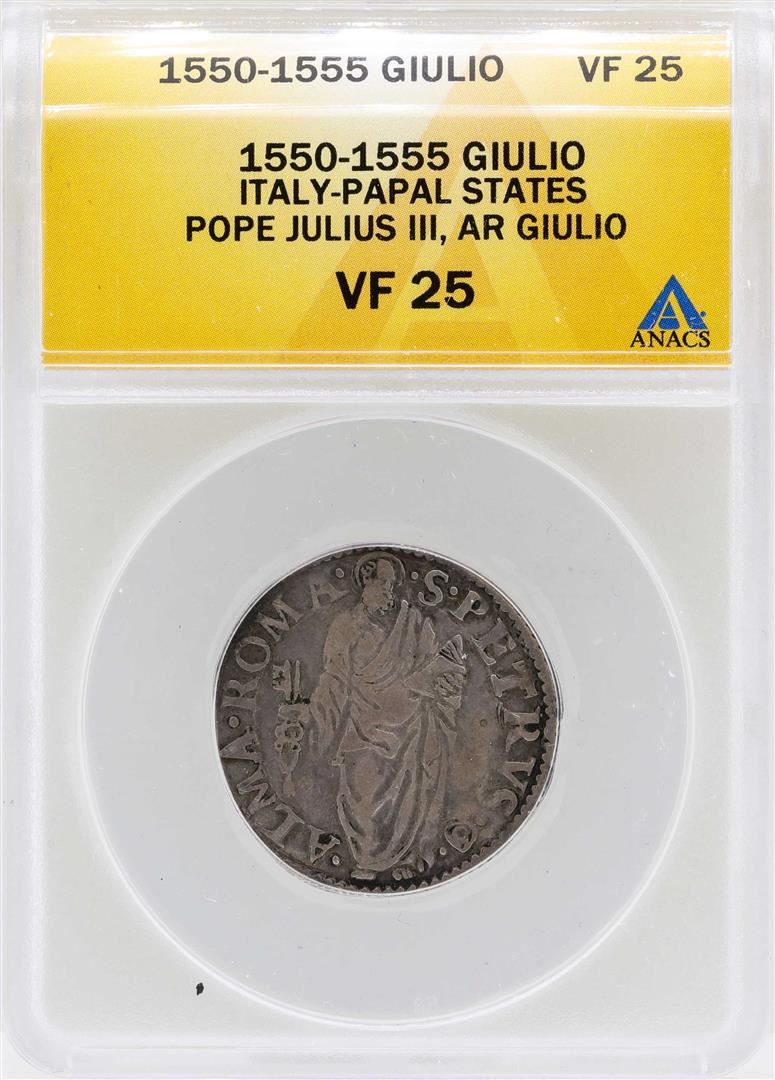 One 1550-1555 Italy-Papal States Giulio Pope Julius III Coin ANACS VF25. ANACS Certified.