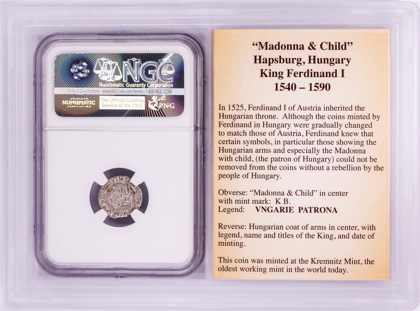 One 1550 KB Hungary Denar 'Madonna and Child' Coin NGC AU55 w/ Story Box. NGC Certified.