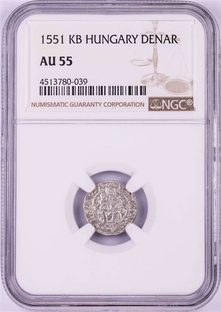 One 1551 KB Hungary Denar 'Madonna and Child' Coin NGC AU55. NGC Certified.
