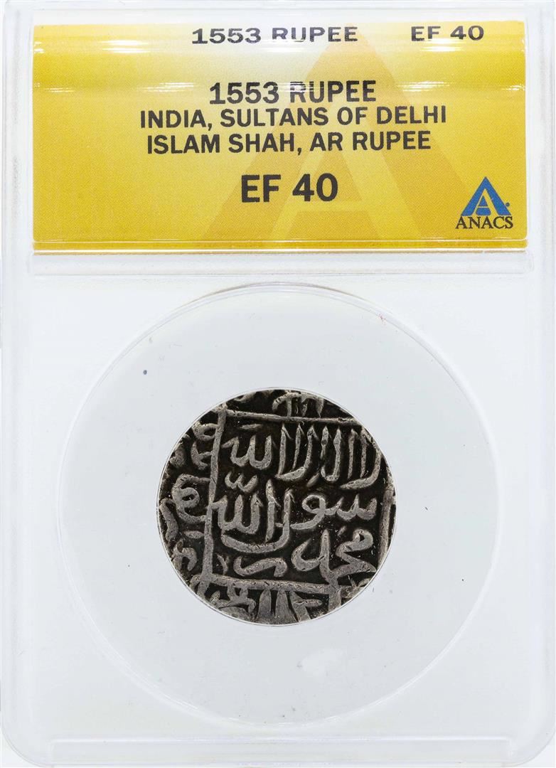 One 1553 India Rupee Sultans of Delhi Coin ANACS EF40. ANACS Certified.