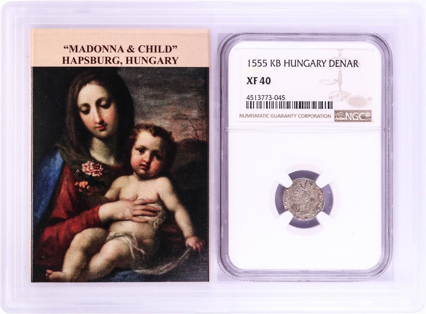 1555 KB Hungary Denar 'Madonna and Child' Coin NGC XF40 w/ Story Box