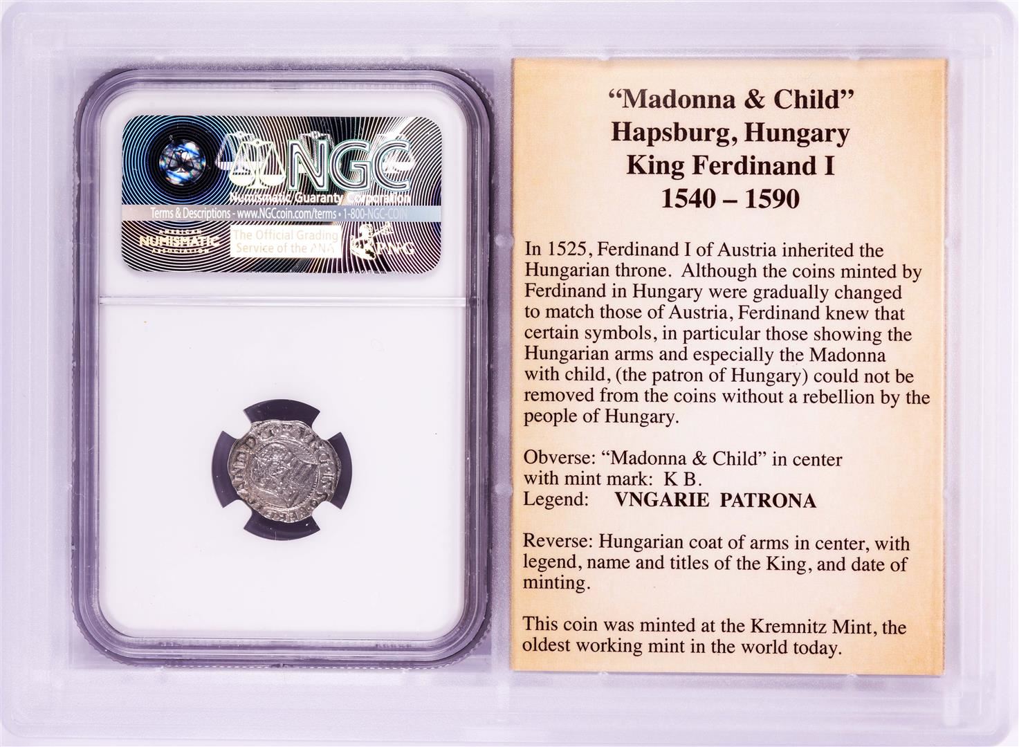 One 1556 KB Hungary Denar 'Madonna and Child' Coin NGC XF45 w/ Story Box. NGC Certified.