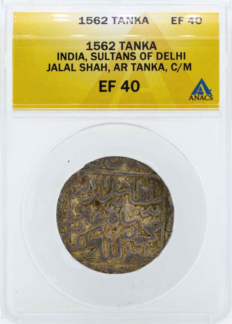 One 1562 India Tanka Sultans of Delhi Coin ANACS EF40. ANACS Certified.
