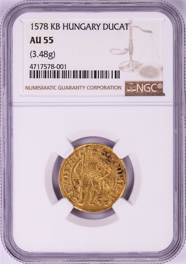 One 1578KB Hungary Ducat Gold Coin NGC AU55. NGC Certified.