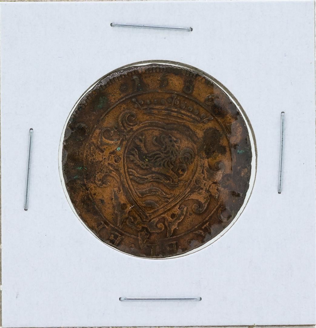 One 1586 Netherlands Lion Zeeland Provincial Shields Jeton Coin.