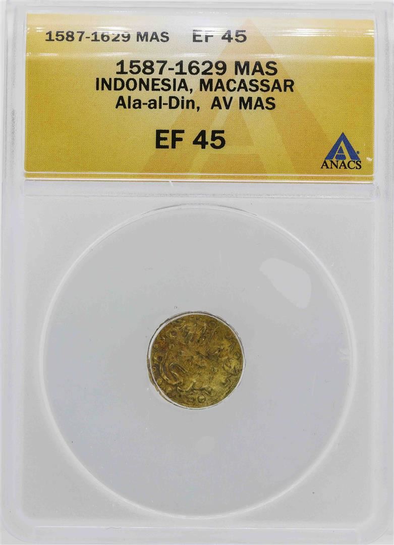 One 1587-1629 Indonisia Ala-al-Din Mas Gold Coin ANACS XF45 Details. ANACS Certified.