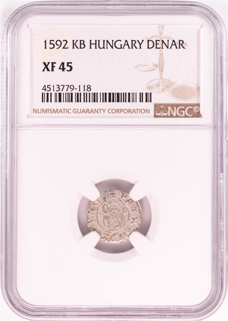 One 1592 KB Hungary Denar 'Madonna and Child' Coin NGC XF45. NGC Certified.