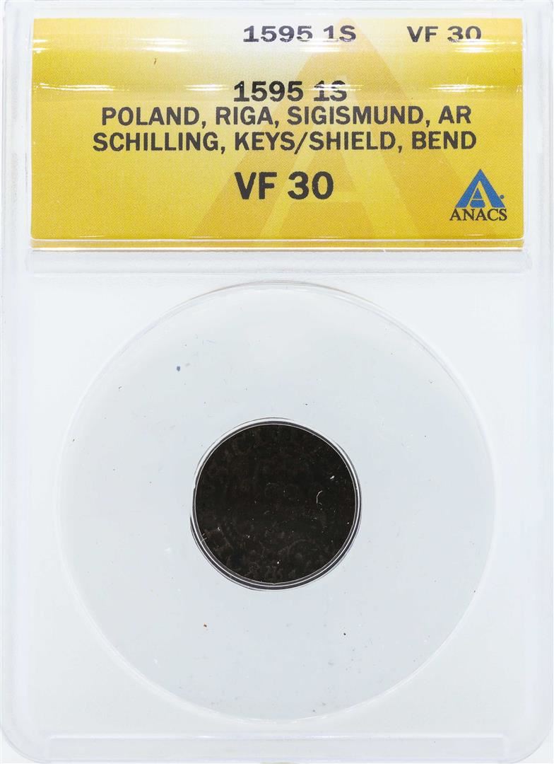 One 1595 Poland Schilling Keys & Shield ANACS VF30. ANACS Certified.