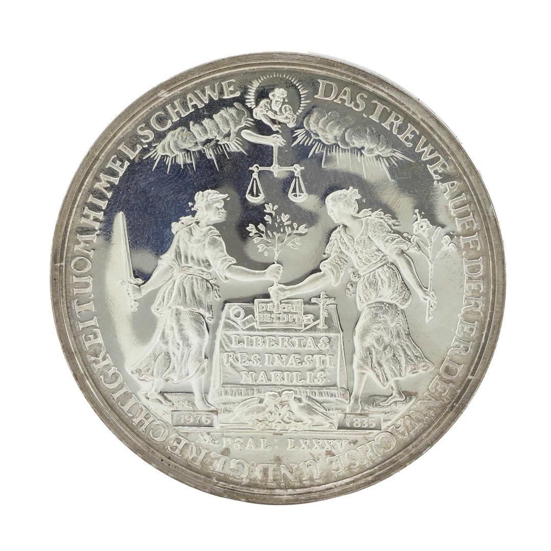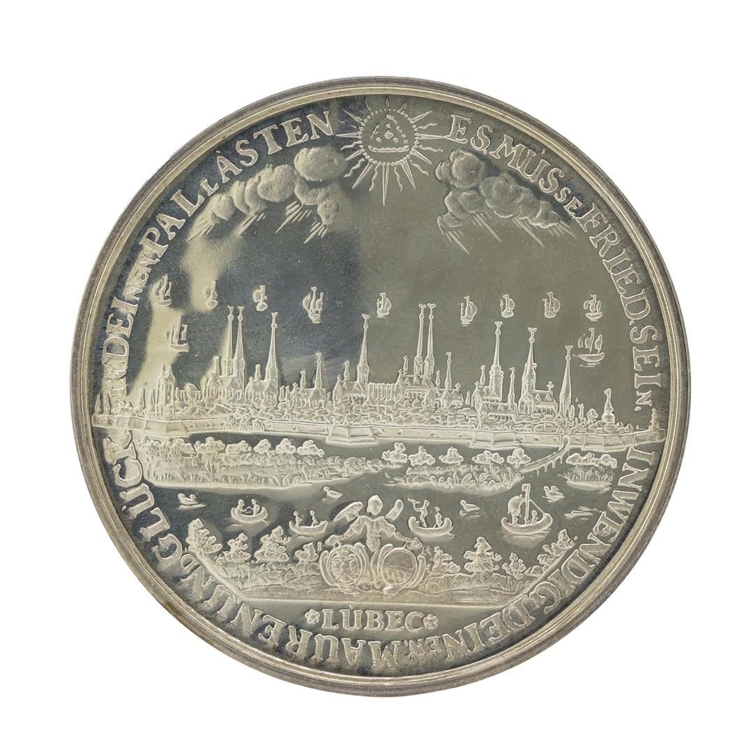 One 1600s Proof 1976 Restrike Germany Lubeck City View Ship Shautaler.