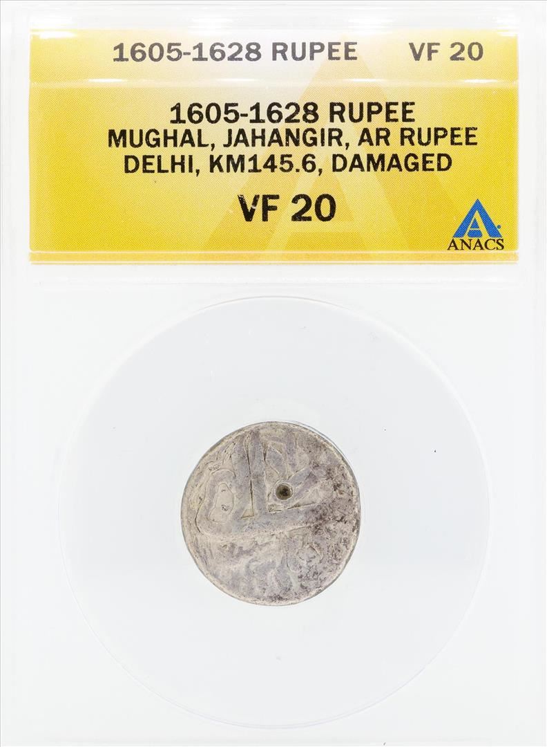 1605-1628 Rupee Mughal Jahangir AR Delhi Damaged Coin ANACS VF20